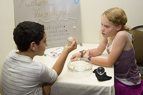 Birthday Parties - Bar & Bat Mitzvahs - Private Readings Madam Veronique is a fortune teller who excels in Tarot cards, palm readings, and ice and water readings, as well as the crystal ball. And she actually has ESP, unlike most fortune tellers, who just pick your future out of a hat. She also sometimes reads the past. Madam Veronique learned about her gift when she was nine. She was in Salem, Massachusetts, at the Salem Witch Museum, and discovered a book about fortune telling. She immediately began to read it and try little experiments. Soon, she was ready to tell her first fortune. And it came true! Since then, she has regularly been predicting the future and relating the past of her friends. Now she has extended her work to birthday parties, bar/bat mitzvahs, and other celebrations. You can have her at your next event.